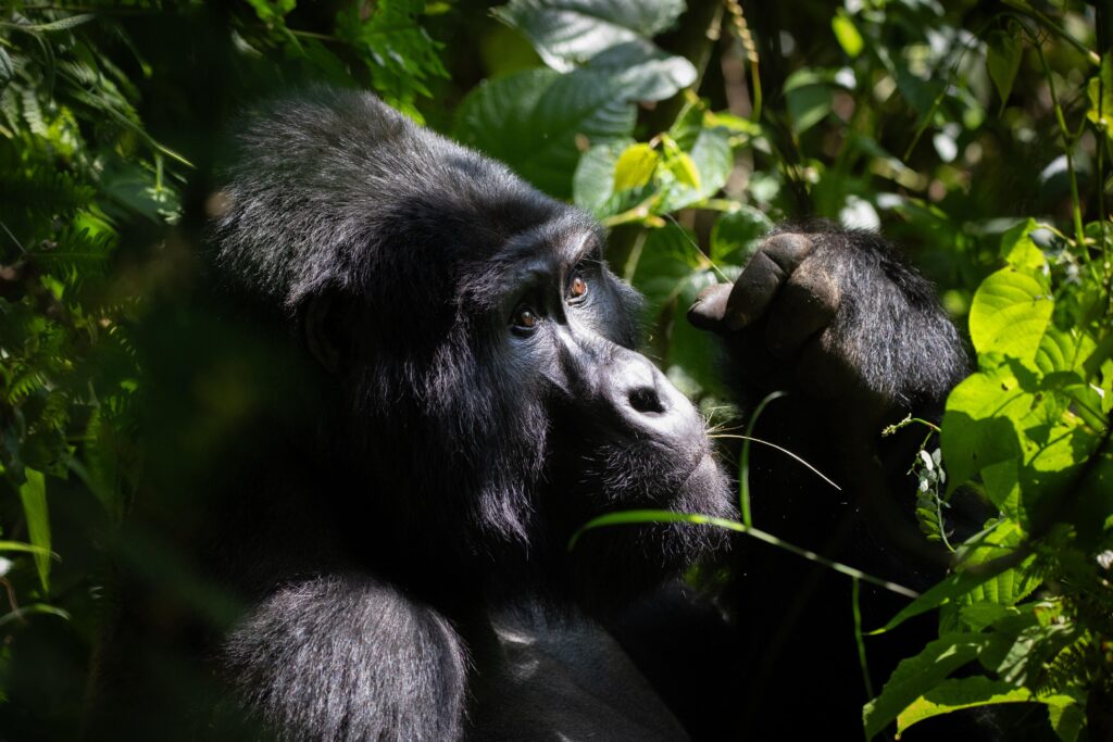 Begin your trek into the dense forest to find a gorilla family (trek can take 2–6 hours depending on location)